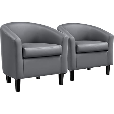 Amazon Com Yaheetech Pack Of 2 Barrel Chair Faux Leather Club Chair Accent Armchair Modern Style Tub Chair For For Living Room Gray Home Kitchen